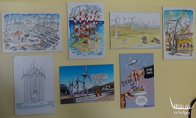 Στη συνέχεια ο Α. Μαβής έδωσε το στίγμα της σημερινής κατάστασης. Εξήγησε πως οι ανεμογεννήτριες στο Στενό/Φραγκάκη πέρασαν και από το ΣτΕ και ξεκινά η εγκατάσταση τους. Για τον Καμπανό και την ΔΕΗ είπε πως δεν υπάρχει τρόπος να σταματήσουν νομικά. Πρόβαλε έναν χάρτη κι έδωσε μια σειρά πληροφορίες. Κάποια στιγμή ανέφερε και τις ανεμογεννήτριες Κοπελούζου λέγοντας πως είναι οι μόνες που υπάρχει δυνατότητα να τις σταματήσουμε στο ΣτΕ μιας και οι προσφυγές εναντίον τους υποστηρίζονται από τους Δήμους τεσσάρων νησιών (Άνδρος, Τήνος, Πάρος, Νάξος) και την Περιφέρεια και οι αντιδράσεις είναι μεγάλες. Εξήγησε ακόμα πως ήδη έχουν κοπεί οι ανεμογεννήτριες στο Πέταλο και στην Κουβάρα. τις οποίες όμως παρουσίασε στον χάρτη, που πρόβαλε και τον οποίο δεν είχε φροντίσει να επικαιροποιήσει!!! Και τέλος χωρίς να είναι ακριβής είπε πως ο τελικός αριθμός των μηχανών στην Άνδρο θα είναι μεγάλος!