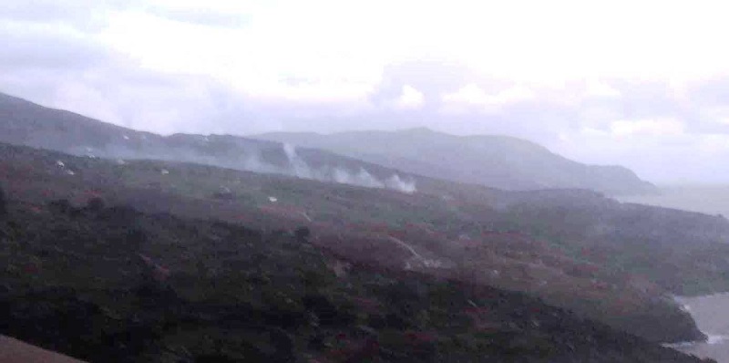 Φωτογραφία του καιόμενου ΧΑΔΑ λίγο πριν τις 5 το απόγευμα. Ο καπνός πάει προς Πιτροφό και Χώρα.