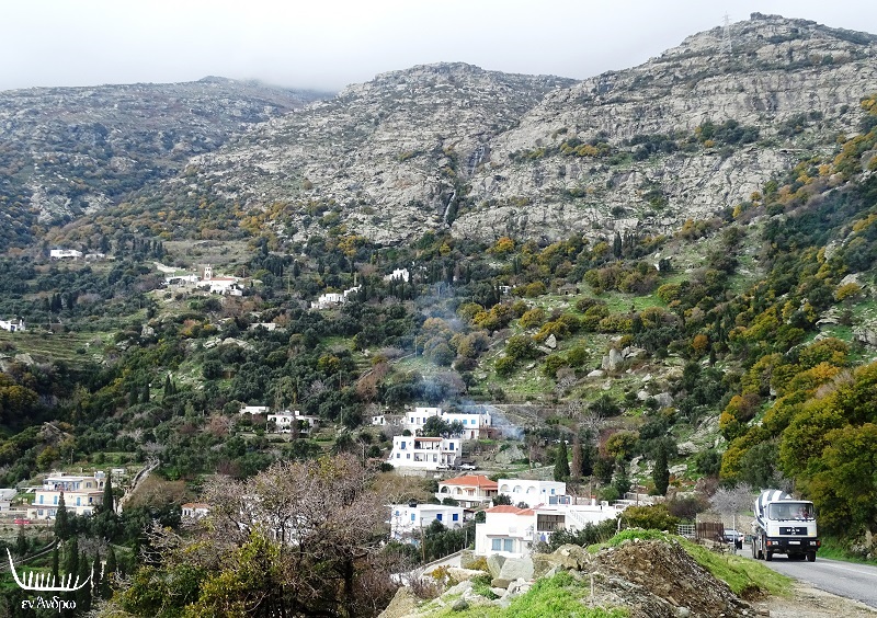Ξεμπλόκαρε όμως μαζί με την ανασκαφή και ο δρόμος του κοιμητηρίου που είναι μόλις 50 μέτρα από τον κεντρικό δρόμο (102 σκαλιά) που είναι ο βασικός οδικός άξονας όλης της Άνδρου. Ήταν μια μεγάλη αδικία για το ιστορικό χωριό που έχει το πιο φορτωμένο τμήμα όλου του επαρχιακού δικτύου (όπως φαίνεται και στην φωτογραφία όπου η μπετονιέρα να επιστρέφει άδεια από την Υδρούσα αφού έριξε τα μπετά) και δεν μπορούσε να έχει μια παράκαμψη 25 μέτρων για να πάει αυτοκίνητο μέχρι το κοιμητήριο. Για σκεφτείτε, αυτοί που συνέβαλαν με το δρόμο τους στην ανάπτυξη όλης της Άνδρου δεν είχαν δρόμους να επικοινωνήσουν μεταξύ τους. Και βέβαια κανένας δεν είπε ποτέ μια κουβέντα μέχρι σήμερα για αυτό το θέμα...