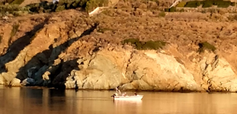 Η ειδική βάρκα ηλεκτρονικής βυθομέτρησης. Τα έργα προχωράνε καθημερινά στο Γαύριο. ..