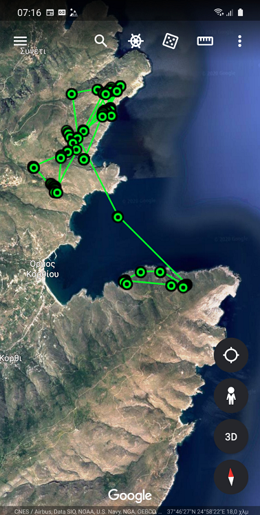 Φωτογραφία με την διαδρομή του 2019 του σπιζαετού από το Φραγκάκι, που αφού διέτρεξε όλη την Ελλάδα, έφτασε Αλβανία, απέφυγε όλα τα αιολικά στη διαδρομή του και τελικά σκοτώθηκε από ηλεκτροπληξία σε κολώνα μέσης τάσης της ΔΕΗ. Ακόμα ένας, σκοτώθηκε σε άλλη κολώνα της ΔΕΗ κάπου στη δυτική Ελλάδα.