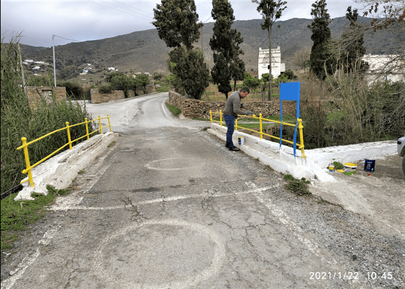 Από τον ακούραστο Γιώργο Μαντζώρο, άμισθο σύμβουλο του δημάρχου και εντεταλμένου στο Λιμενικό Ταμείο Άνδρου, λάβαμε το παρακάτω σημείωμα και μια σειρά φωτογραφίες από ΟΛΕΣ τις γέφυρες του Γαυρίου: "Ακόμα ένα μικρό, αλλά σημαντικό έργο τελείωσε. Ολοκληρώθηκαν σήμερα οι εργασίες καλλωπισμού και ενίσχυσης της ασφάλειας σε όλες τις γέφυρες της ευρύτερης περιοχής του Γαυριου. Έγιναν ελαιοχρωματισμοί ασφαλείας στα μεταλλικά κιγκλιδώματα (κίτρινα) και στα κρηπιδώματα (λευκό). Ευχαριστούμε και πάλι τους συμβασιούχους εργαζομένους του Δήμου Άνδρου και του Λιμενικού Ταμείου Άνδρου. Συνεχίζουμε!..."