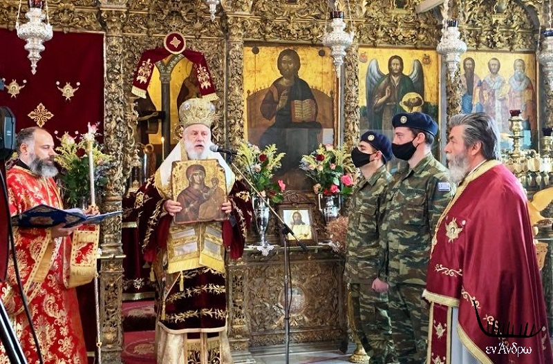 Ήταν για μια ακόμα χρονιά η πανανδριακή εορτή περιορισμένη στα πλαίσια του υγειονομικού πρωτοκόλλου. Λίγος κόσμος, μάσκες, χωρίς λιτανείες και στέφανα. Πάντως οι επίσημοι έστω και χωρίς κόσμο ήταν παρόντες. Παρόντα και τα Media. Όσα ακόμα διακονούν το έργο της ενημέρωσης. Πολιτικοί, ΜΜΕ, εκκλησιαστική ιεραρχία συνεόρτασαν σε κλειστό κύκλο την μεγάλη γιορτή της Άνδρου και της Παναγιάς των Ναυτικών.