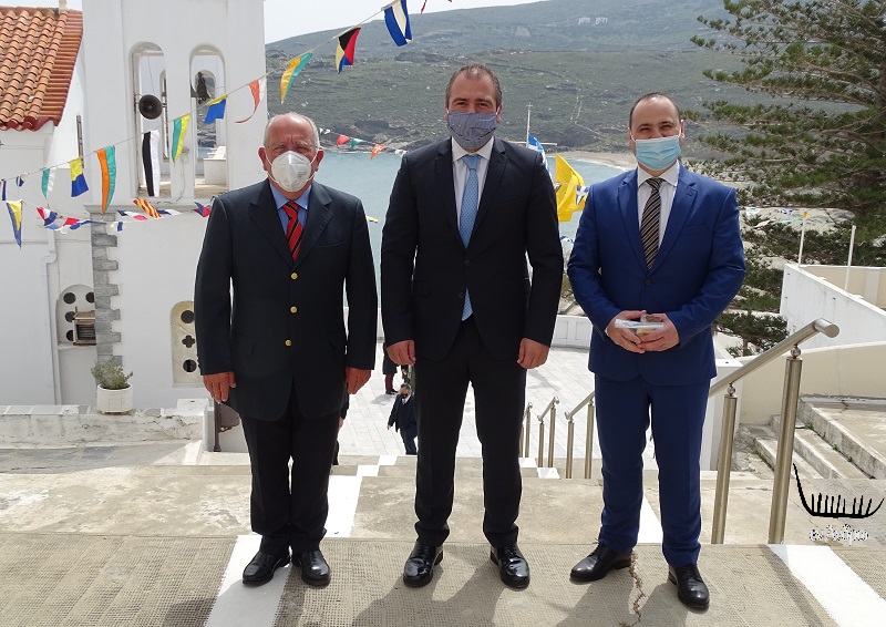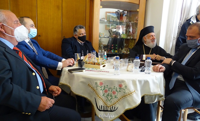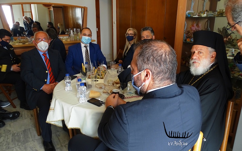 Στο μικρό τραπέζι του κεράσματος παρόντες ο μητροπολίτης Δωρόθεος Β΄και ο διάκος που τον συνόδευε, ο βουλευτής Φίλιππος Φόρτωμας, ο δήμαρχος Άνδρου Δ. Λοτσάρης, ο έπαρχος Άνδρου Δ. Λάσκαρης, ο αντιδήμαρχος Χώρας Δ. Γιαννίσης, η επικεφαλής της Πολιτικής Προστασίας Ι. Σαραβάνου, η αντιδήμαρχος Μ. Βενετίκη, η εφημερίδα Κυκλαδική, το τηλεοπτικό κανάλι της Σύρου, ο εκπρόσωπος της Εθνοφρουράς κλπ.