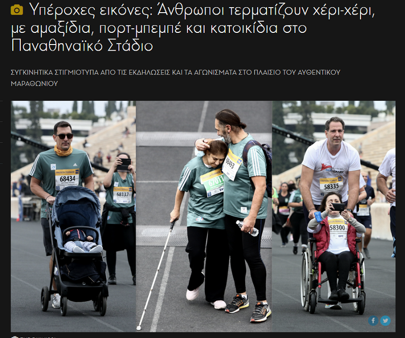 Φωτογραφίες της LIFO από τον τερματισμό στο παναθηναϊκό στάδιο υπέροχων και πολιτισμένων ανθρώπων αυτής της χώρας που γέννησε τον πολιτισμό, τον Ιπποκράτη, τον Ασκληπιό και το Γαληνό, αλλά και τον Τήνιο απολίτιστο και ρατσιστή πρόεδρο του λιμενικού ταμείου Τήνου-Άνδρου Γ. Σανταμούρη που απεχθάνεται τα ΑΜΕΑ σύμφωνα με δική του δήλωση που αναρτήσαμε ολόκληρη στην προηγούμενη δημοσίευση μας: Ο ΠΟΛΙΤΙΣΜΟΣ ΤΗΣ ΤΗΝΟΥ ΚΑΙ Ο ΑΠΟΛΙΤΙΣΤΟΣ...