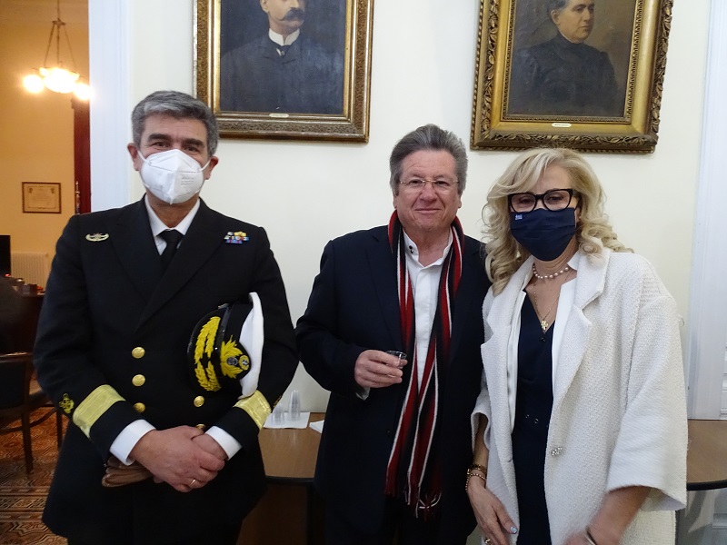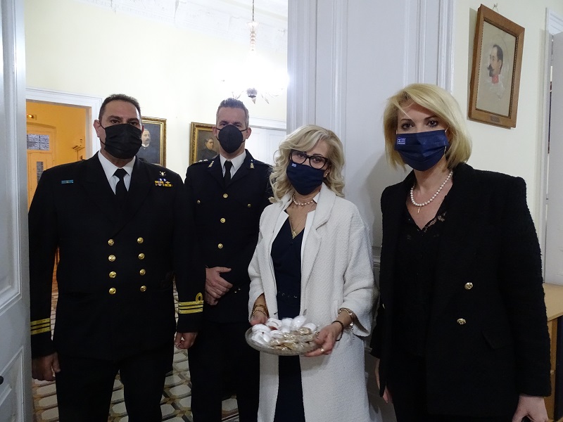 Ο διοικητής της Ναυτικής Βάσης Άνδρου Μιχάλης Πέππας, ο προϊστάμενος του πυροσβεστικού κλιμακίου Άνδρου Δημήτρης Πρινιωτάκης, η Ιωάννα Σαραβάνου και η βουλευτής Κυκλάδων Κατερίνα Μονογιού.
