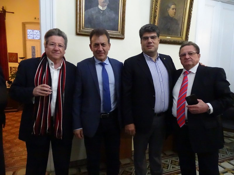 Νωρίτερα στο δημαρχείο: οι πλοιοκτήτες και πλέον επιχειρηματίες και στον χώρο του τουρισμού της Άνδρου αδελφοί Στεφάνου (αριστερά και δεξιά) και ο πρώην υπουργός Γ, Βρούτσης, καθώς και ο επιχειρηματίας κ. Λαούδης από το Κόρθι.