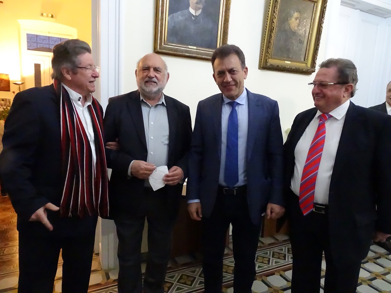 Συζήτηση μεταξύ του πρώην υπουργού κ. Βρούτση και του επιχειρηματία κ. Λαούδη. Παρών και ο οικονομολόγος και πρώην δήμαρχος Υδρούσας Κυριάκος Θωμάς.