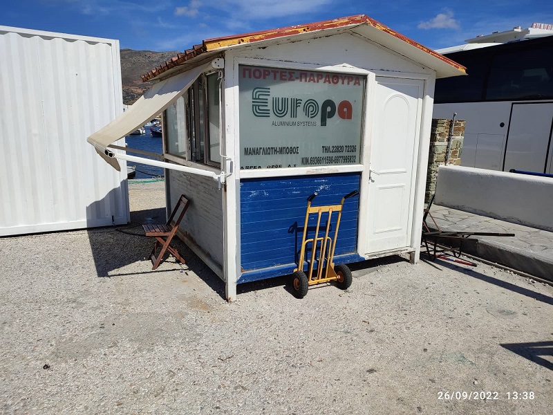 Και μιας και μιλάμε για έργα και προμήθειες ήρθε ο καινούργιος πολυεστερικός προκατασκευασμένος οικίσκος που παραγγέλθηκε από τον Γ. Μαντζώρο και την σημερινή διοίκηση του Δήμου Άνδρου και θα τοποθετηθεί στη θέση του για χρήση των εργαζομένων (καβοδετών κλπ) στο λιμάνι. Ο παλιός με την τσίγκινη στέγη θα μεταφερθεί, όπως μάθαμε, στην Σταυροπέδα για προσωρινή στέγαση των εργατών του μπαλοδέτη. Για τον καινούριο θα χρειαστούν, όπως επίσης μάθαμε, γερανός, ηλεκτρολόγος και οικοδόμος. Την αποπληρωμή του νέου οικίσκου που πληροί όλες τις προδιαγραφές έκανε το Λιμενικό Ταμείο Τήνου – Άνδρου με την πρόεδρο του οποίου, Ευγενία Αλιμόνου, οι σχέσεις είναι εξαιρετικές.