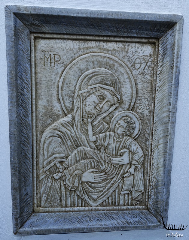 Στη βάση του καμπαναριού τοποθετήθηκε μια εξαιρετική μαρμάρινη καλοδουλεμένη εικόνα της Παναγίας με το θείο βρέφος. Βυζαντινή αποτύπωση σε εξαιρετικά διαμορφωμένο μάρμαρο. Μέρος κι αυτή του μικρού θαύματος που έγινε στην Πίσω Μεριά. Πάμε τώρα και στις "ανίερες" αντιθέσεις. Γύρω από αυτό το έργο εξαιρετικής ανάπλασης στο μέσο της περιοχής Γλυνάδο της Πίσω Μεριάς έχει ξεσπάσει ένας μικρός "πόλεμος"! Ο ιερέας της περιοχής θεώρησε πως κακώς δεν ρωτήθηκε αυτός και η ναοδομία. Κι έχει προβεί σε καταγγελίες και μηνύσεις κατά του δικηγόρου και προέδρου του Κληροδοτήματος Γ. Αντωνέλλου και κατά άλλων κατοίκων. Ο Γ. Αντωνέλλος έπραξε ότι έπραξε ως Μουστάκειο - όπως εξήγησε - σε στενή συνεννόηση με την τεχνική υπηρεσία του Δήμου. Και σύμφωνα και με τις μαρτυρίες (μιλήσαμε προσωπικά με κατοίκους) ο χώρος που ήταν μια αθλιότητα στη μέση του χωριού τώρα είναι το καλύτερο μέρος του χωριού.