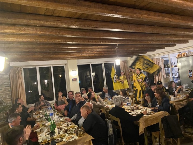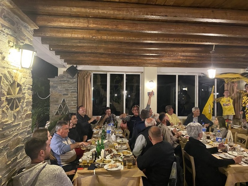 Το μεγάλο γλέντι όμως έγινε στο Φελλό και ΔΕΝ ήταν πολιτικό. Ήταν ποδοσφαιρικό. Ο δήμαρχος Δημήτρης Λοτσάρης κάλεσε γνωστούς Αεκτζήδες από όλο το νησί. Και δεν ήταν λίγοι. Πάνω από 40 άτομα γιόρτασαν ξέφρενα το πρωτάθλημα που πήρε η ΑΕΚ εφέτος στο ποδόσφαιρο.