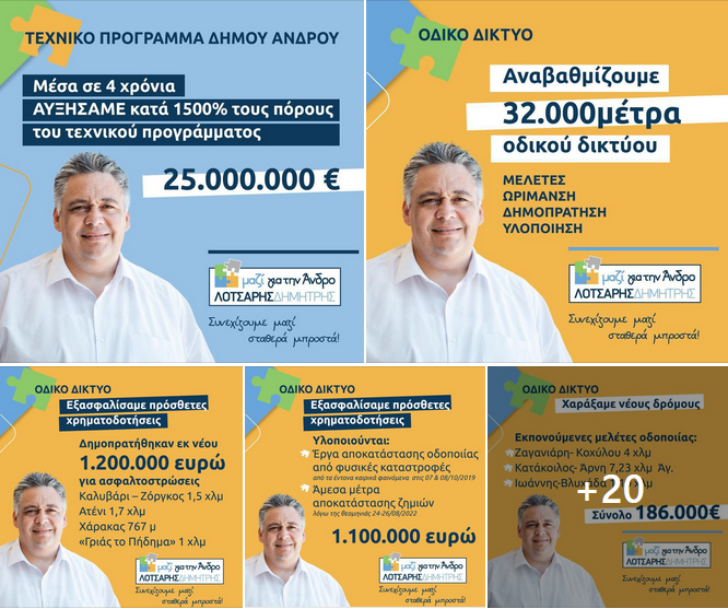 Από το φυλλάδιο απολογισμού έργων, αλλά και εξαγγελίας νέων έργων για τα επόμενα 5 χρόνια του πολύ καλά οργανωμένου επιτελείου του Δ. Λοτσάρη.