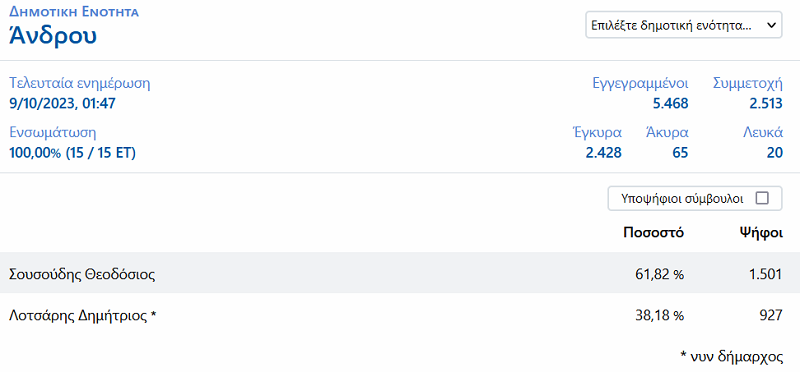 ΠΟΣΑ ΠΗΡΑΝ ΟΙ ΠΑΡΑΤΑΞΕΙΣ ΑΝΑ ΔΗΜΟΤΙΚΗ ΕΝΟΤΗΤΑ - Η ΣΕΙΡΑ ΤΩΝ ΔΗΜΟΤΙΚΩΝ ΣΥΜΒΟΥΛΩΝ ΣΕ ΟΛΗ ΤΗΝ ΑΝΔΡΟ