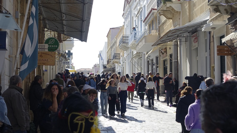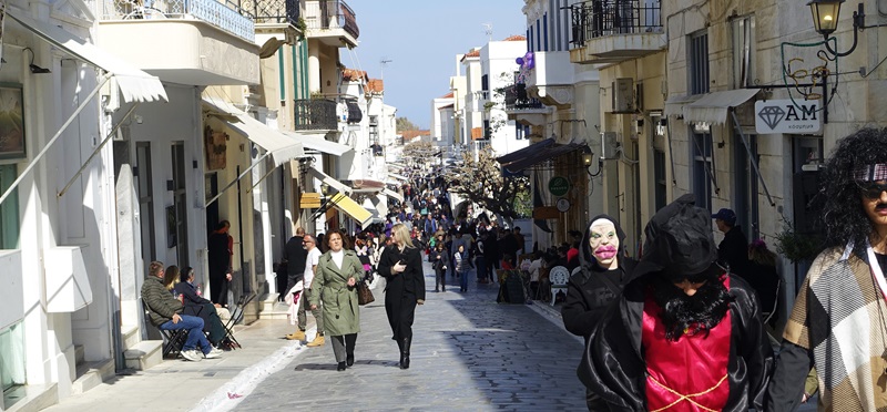 Ο πεζόδρομος της Χώρας περιμένει τα άρματα και τους καρναβαλιστές...