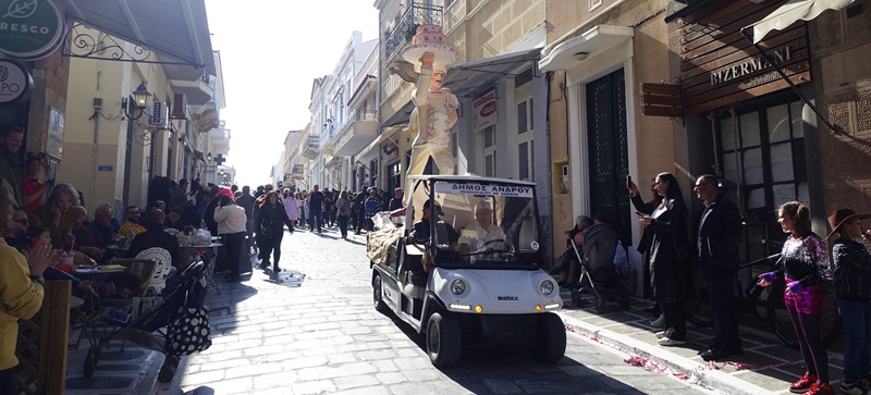 Αρκετά τα ξεχωριστά άρματα στο καρναβάλι της Χώρας Άνδρου. Από τον Ζαχαροπλάστη μέχρι τον Ποδοσφαιριστή. Και από τον Χάρυ Πότερ μέχρι την Μπάρμπι και την Πιτροφιανή Παράνοια.