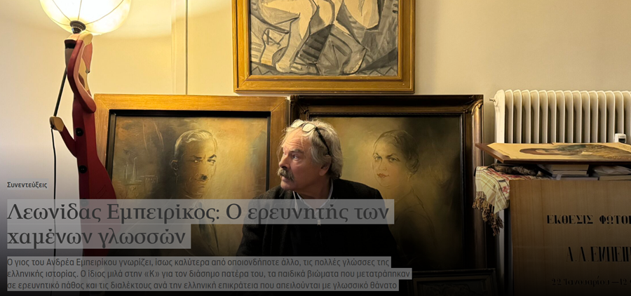 Χρόνια αργότερα, το τραυματικό παιδικό βίωμα μετασχηματίστηκε σε ερευνητικό πάθος. Ο Λεωνίδας Εμπειρίκος είναι ιστορικός με ειδίκευση στις γλωσσικές και εθνοτικές κοινότητες στην ιστορία του ελληνικού κράτους. Ωστόσο, αυτή η περιγραφή δεν συλλαμβάνει το εύρος των γνώσεων και το βάθος της σκέψης του. Στη συζήτησή μας τόποι, άνθρωποι, ιδιώματα και γλώσσες συνέθεταν έναν λαβύρινθο αναφορών της ελληνικής επικράτειας. Στο σπίτι που μεγάλωσε, και που κατοικεί μέχρι και σήμερα, η ιστορία κυριαρχεί, ενώ η παρουσία του διάσημου πατέρα του δεσπόζει στον χώρο. Ο Ανδρέας Εμπειρίκος πειραματίστηκε με την ελληνική γλώσσα ως ένας από τους επιδραστικότερους υπερρεαλιστές του 20ού αιώνα. Ο Λεωνίδας Εμπειρίκος όμως, είναι ο άνθρωπος που ξέρει ίσως καλύτερα από οποιονδήποτε άλλο, τις πολλές γλώσσες της ελληνικής ιστορίας.
