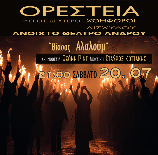 ΑΙΣΧΥΛΟΥ ΟΡΕΣΤΕΙΑ - ΧΟΗΦΟΡΟΙ: Η Θεώνη Ριντ και ο θίασος ΑΛΑΛΟΥΜ στο Ανοιχτό Θέατρο Άνδρου, Σάββατο 20/7