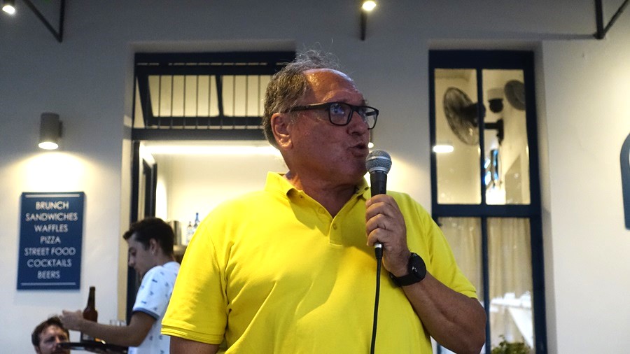 Μέχρι τις 19:45 προσήλθαν δεκάδες και γέμισαν τα άδεια καθίσματα. Όμως η μικροφωνική δεν είχε φτάσει. Ήταν ακόμα στην Μεσαριά. Την παράσταση έσωσε ο πρώην έπαρχος Δημήτρης Λάσκαρης, που κατέφθασε με μια κούτα γεμάτη παστιτσάκια. Όσα και να έφερε ο κόσμος, που ακόμα έφτανε, ήταν περισσότερος! Ευτυχώς όμως υπήρχαν τα αναψυκτικά που πρόσφερε το κατάστημα και υπερκάλυψαν το κέρασμα. Ποιος να το περίμενε πως στο τέλος θα γέμιζε εντελώς το καφέ; Τέλος προς μεγάλη ανακούφιση όλων κατέφθασε και ο ηχολήπτης και γύρω στις 19:55 και η εκδήλωση ξεκίνησε.