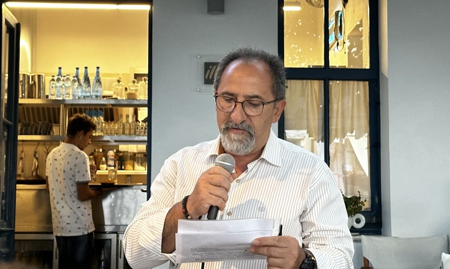 Ακολούθησε ο Μάριος Μπεγζος, καθηγητής και πρώην κοσμήτορας της Θεολογικής Σχολής του ΕΚΠΑ, που πλέον εδώ και κάτι χρόνια επέστρεψε στην μητρική Άνδρο. Ο Μάριος με μια γλαφυρή ομιλία του για τη σημασία της θάλασσας και των ταξιδιών στη ζωή του ανθρώπου εστίασε στο ρίσκο, στην ανάγκη να πάρουν πρωτοβουλίες, να αυτοσχεδιάσουν απέναντι στο υγρό στοιχείο. Οι ναυτικοί κυριολεκτικά "παίρνουν τη ζωή τους στα χέρια τους". Κι έκλεισε διαβάζοντας δύο αποσπάσματα από τις Ιστορίες. Περίληψη της όντως εύστοχης ομιλίας του δημοσιεύεται σε άλλη ανάρτηση του σάιτ.
