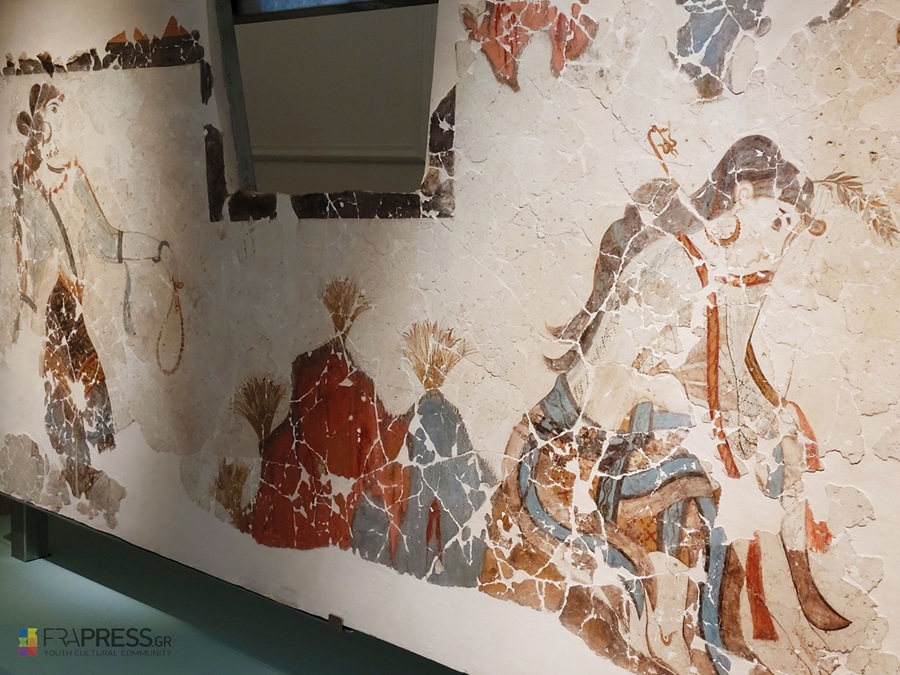Τοιχογραφία από το Ακρωτήρι της Θήρας όπου οι γυναίκες απεικονίζονται να μαζεύουν άνθη που χρησιμοποιούνταν ως φάρμακα σε πληγές.