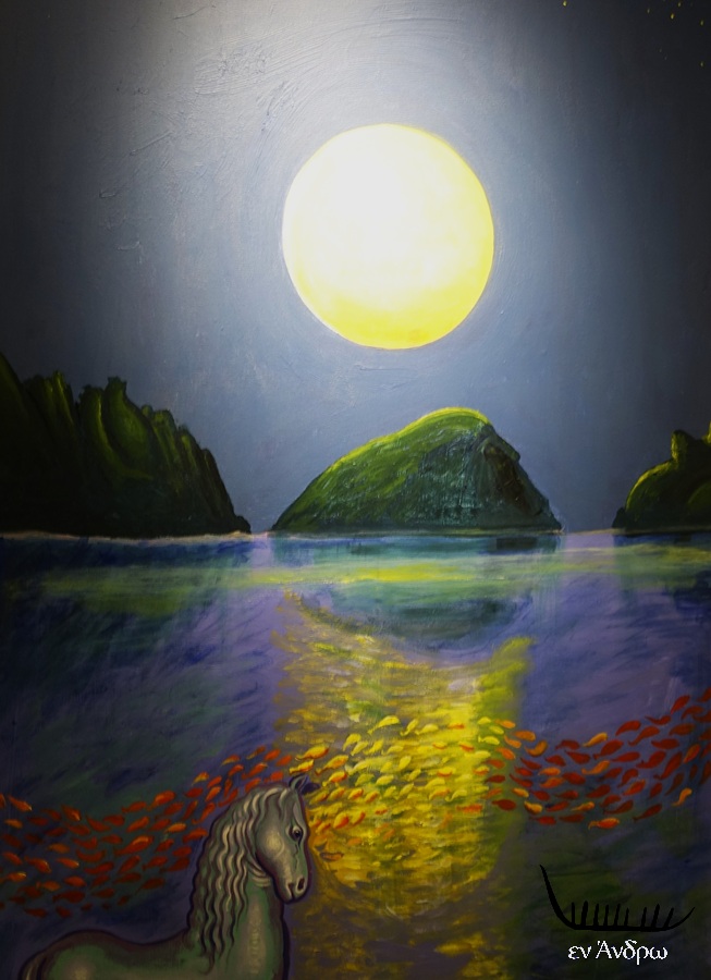 ΧΡΗΣΤΟΣ ΚΕΧΑΓΙΟΓΛΟΥ: Είναι μια μακρά ιστορία που ξεκίνησε στις αρχές της δεκαετίας του ’90. Ερχόμουν τότε στο νησί για να δω τον φίλο μου, τον εικαστικό Κώστα Ιωαννίδη, ο οποίος έχει και τη δική του παρουσία στην Πινακοθήκη. Μαζί εξερευνούσαμε το νησί· με ξενάγησε στις ιδιαιτερότητές του, μου το σύστησε, και σταδιακά το αγάπησα, το έζησα, το ανακάλυψα. Αργότερα έχτισα εκεί ένα σπίτι και εργαστήριο, σε ένα μέρος που αγαπώ βαθιά - στην περιοχή του Ζαγανιάρη, τότε εντελώς έρημη, πάνω από την αρχαία Ζαγορά και τις παραλίες της Πλάκας. Πιστεύω πως έχω πια μια πολύ ουσιαστική σχέση με την Άνδρο· ή, μάλλον, με έχει υιοθετήσει το νησί. Από παιδί είχα μια ιδιαίτερη σύνδεση με τον Άγιο Παντελεήμονα. Δεν θα μπω σε λεπτομέρειες, αλλά πάντα αισθανόμουν πως αυτή η σχέση διατηρούνταν με έναν ‘μυστικό’ τρόπο. Κι έτσι, καθώς ανακάλυπτα την Άνδρο, ανακάλυψα και τη Μονή κι αισθάνθηκα την ολοζώντανη παρουσία του Αγίου Παντελεήμονα. Το μοναστήρι αποτελεί πλέον για μένα σημείο αναφοράς. Είναι σπάνιο να έρθω στο νησί, έστω και για δύο μέρες, και να μην περάσω να το χαιρετήσω.