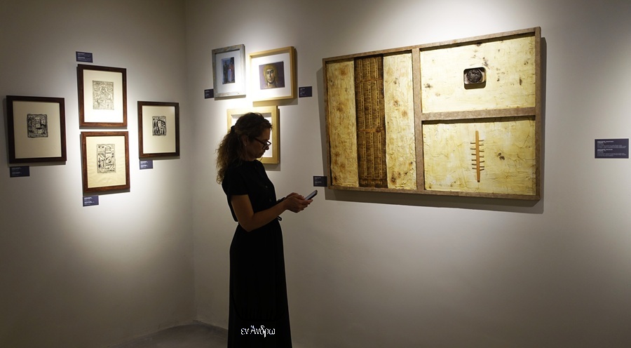 Μια εικόνα πολλές λέξεις; Ή, μήπως μια εικόνα μια εύγλωττη σιωπή; Μια νέα γυναίκα περιηγείται της έκθεσης και συνάμα διαβάζει για τον καλλιτέχνη και το έργο του. Σαν εικόνα εκκλησίας...