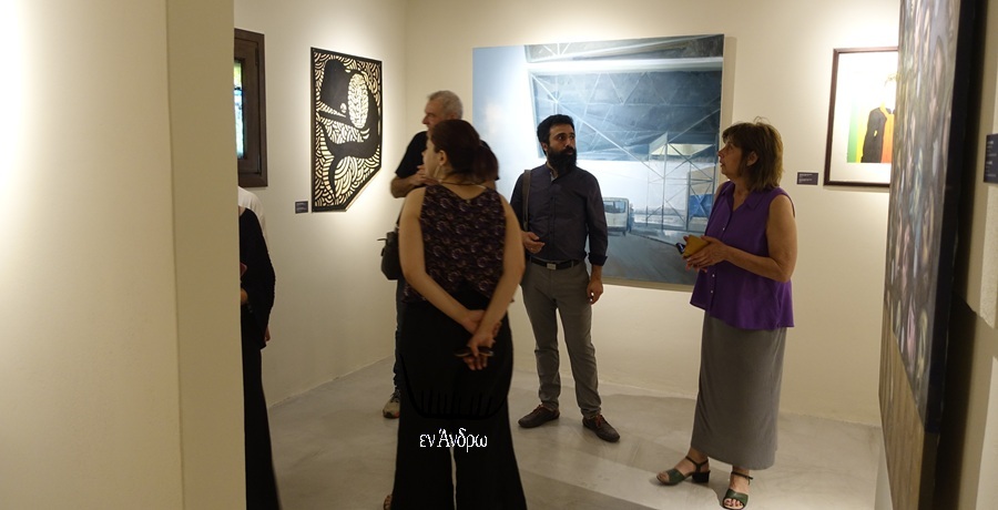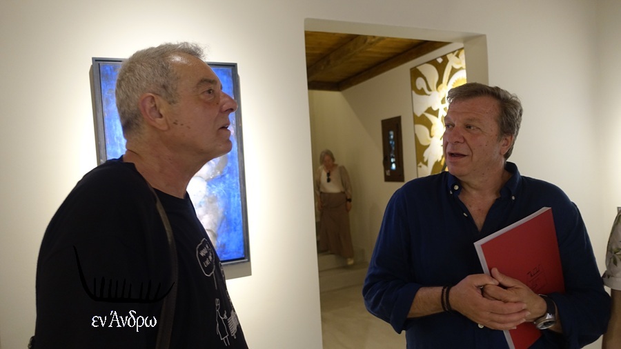Στην τελετή των εγκαινίων πολλοί οι παριστάμενοι. Αξιοσημείωτη η παρουσία δεκάδων καλλιτεχνών, σχετικών με την έκθεση, αλλά και πολλών δημοσιογράφων σχετικών με το νησί, όπως ο Νότης Παπαδόπουλος, που έχει σπίτι στα Λειβάδια, ο Βαγγέλης Παπαδημητρίου, που έχει σπίτι στο Γαύριο. Αλλά και μια ιδιαίτερη πολιτική παρουσία: ο καθηγητής, βουλευτής και πρώην υφυπουργός Παιδείας Άγγελος Συρίγος με την σύζυγό του καθηγήτρια Νομικής του ΕΚΠΑ Ειρήνη Σταματούδη από το Κόρθι. Και ο Γιάννης Ζουγανέλης από τη Μύκονο...