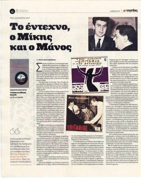 Μέσα από τους ποιητές και τους συνθέτες της η χώρα έμαθε να «βλέπει» διαφορετικά τον εαυτό της. Και αυτήν την «εικόνα» άπλωσε στη συνέχεια στον κόσμο. Το έντεχνο ­συνέβαλε όσο τίποτε άλλο για να δημιουργηθεί αυτή η επικοινωνιακή διάσταση με αναφορά έργα μεγάλων Ελλήνων δημιουργών. Από τον Τσιτσάνη και τον Βαμβακάρη μέχρι τον Χατζιδάκι και τον Θεοδωράκη. Από τον Καζαντζάκη και τον Κακογιάννη μέχρι τον Ελύτη και τον Σεφέρη. Από τον Σικελιανό και τον Γκάτσο μέχρι τον Λειβαδίτη, τον Χριστοδούλου, τον Ελευθερίου, τον Αναγνωστάκη...