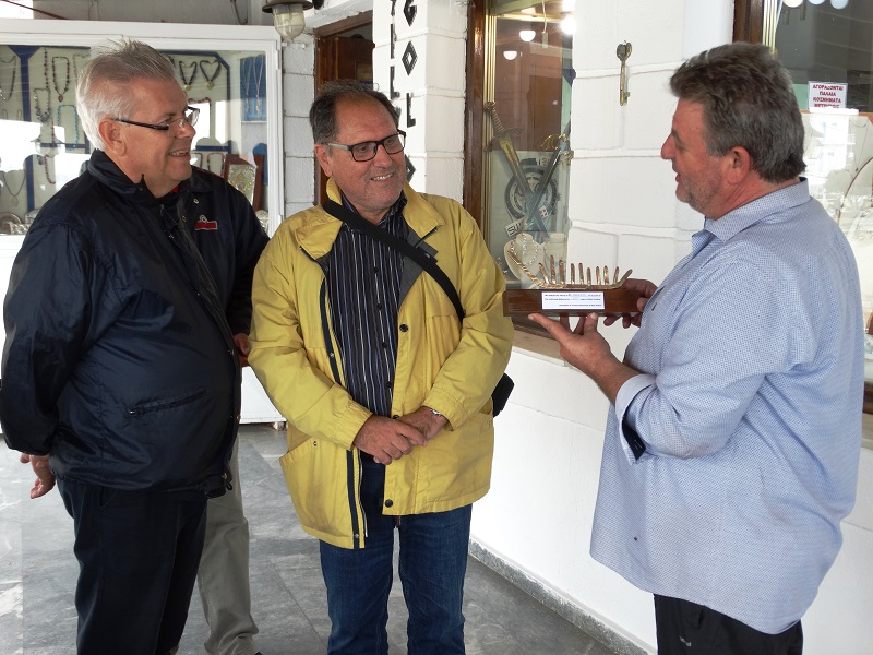 Ο Ευτύχης Τσιγουράκης στο Μπατσί χαρίζει το δημιούργημα του στον διαχειριστή του "Εν Άνδρω"...