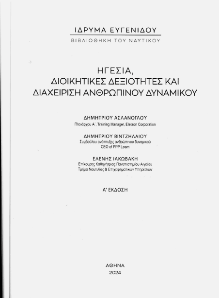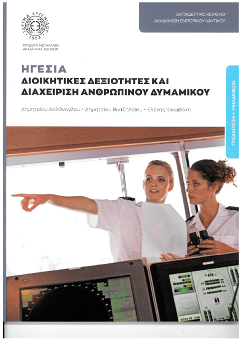 Με ιδιαίτερη χαρά ανακοινώνουμε την πρόσφατη συγγραφή επιστημονικού βιβλίου από το μέλος Α.Μ.Α, κάπτεν Δημήτριο Ασλάνογλου, σε συνεργασία με δύο ακαδημαϊκούς από αναγνωρισμένα πανεπιστήμια. Το βιβλίο έχει τίτλο «Ηγεσία και Διοικητικές Δεξιότητες – Διαχείριση Ανθρώπινου Δυναμικού στη Θάλασσα» και εκδόθηκε από το Ίδρυμα Ευγενίδου.