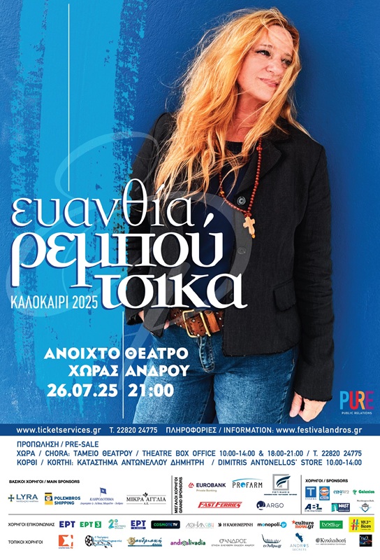 Το 11o Διεθνές Φεστιβάλ Άνδρου ξεκινάει s;hmera με την συναυλία της σπουδαίας Ελληνίδας συνθέτριας Ευανθίας Ρεμπούτσικα που θα πραγματοποιηθεί στο Ανοιχτό Θέατρο Χώρας το Σάββατο 26 Ιουλίου 2025, ώρα 21:00.