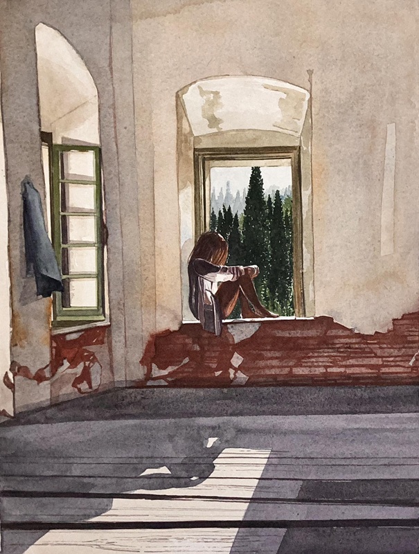 Με τη νέα ενότητα των έργων του, ο Γιώργος Σαλταφέρος προσεγγίζει την Άνδρο από μια οδό περισσότερο κρυπτική και συμβολική, σαν πύλη σε ένα τοπίο σιωπής. «Η έμπνευσή μου ωστόσο ταλαντεύεται», λέει. «Έχω τη διάθεση να συνεχίσω τα εσωτερικά, με αντικείμενα – μάρτυρες άλλων καιρών αλλά και να συνεχίσω πάνω στα τοπία με νερό όπου αυτό υπάρχει… Οράματα που νιώθω ότι πρέπει να διασώσω».