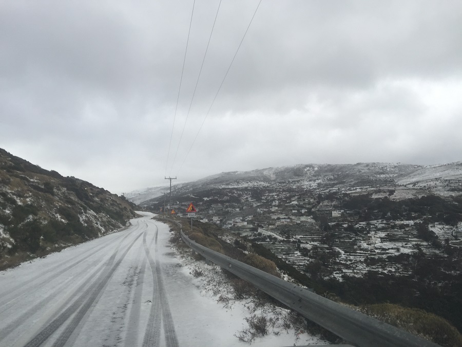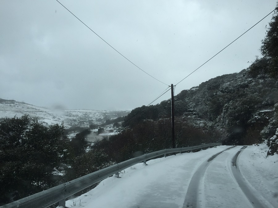 Ο δρόμος χιονισμένος για δεύτερη φορά εφέτος. Για μια ακόμα φορά στα δύσκολα η ορεινή περιοχή.