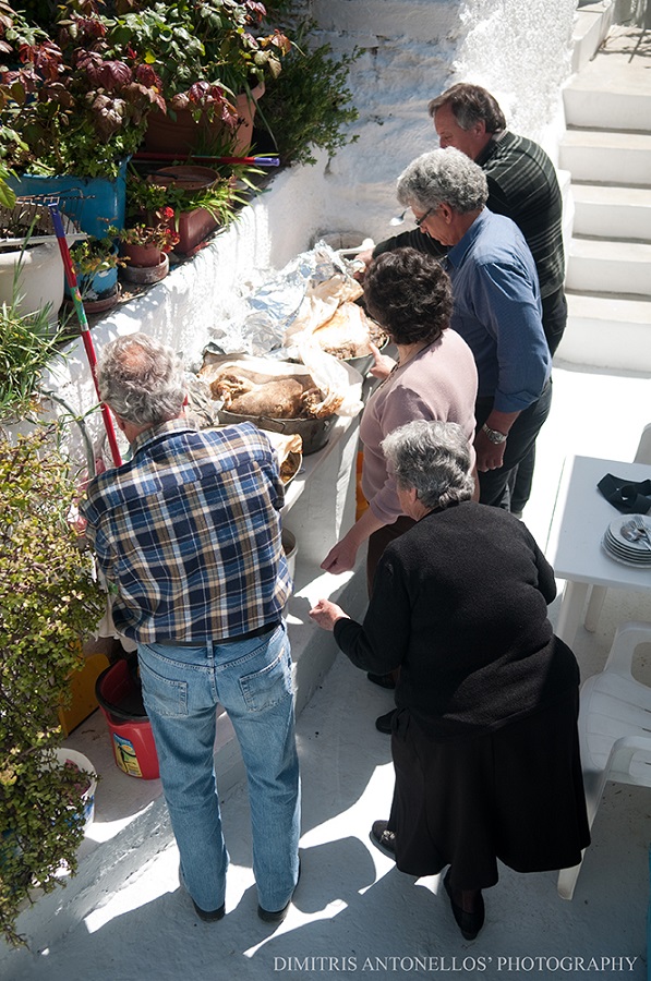 Κάθε χρόνο, το Πάσχα, αναβιώνει το έθιμο του Λαμπριάτη στην Άνδρο. Όλα ξεκινούν νοικοκυρεμένα - όπως καθετί που γίνεται στα χωριά - με την συγκομιδή των «αποκλαδιών», των δεμάτων, δηλαδή, από βέργες αμπελιού, που κλαδεύονται τον Γενάρη. Αυτά συγκεντρώνονται, δένονται σε μεγάλα δεμάτια και ξεραίνονται. Κάθε οικογένεια έχει την υποχρέωση να μεταφέρει από ένα δεμάτι ξύλο στον Φούρνο του χωριού που θα ψηθούν τα αρνιά!