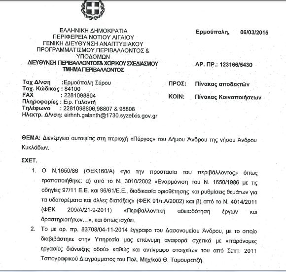 Η καταγγελία σας θα συμπεριληφθεί στο επόμενο τεύχος του περιοδικού «Νήσος Άνδρος» για να γνωρίσει καλά όλος ο κόσμος τι ανόητος και ανασταλτικός που είναι ο κρατικός μηχανισμός και αυτοί που τον υπηρετούν.