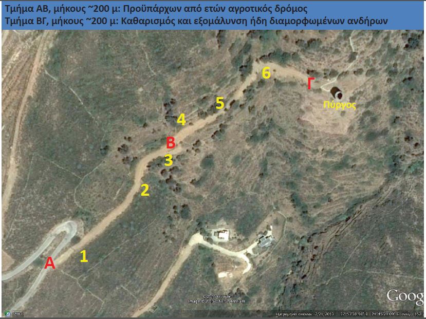 Ο δρόμος όπως ολοκληρώθηκε για να φτάσουν οι μελετητές και τα μηχανήματα για την μελέτη στον Πύργο