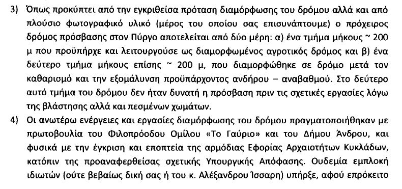 Συνέχεια από το υπόμνημα/απάντηση τυ καθηγητή Αρχαιολογίας