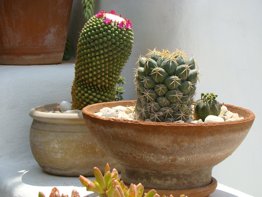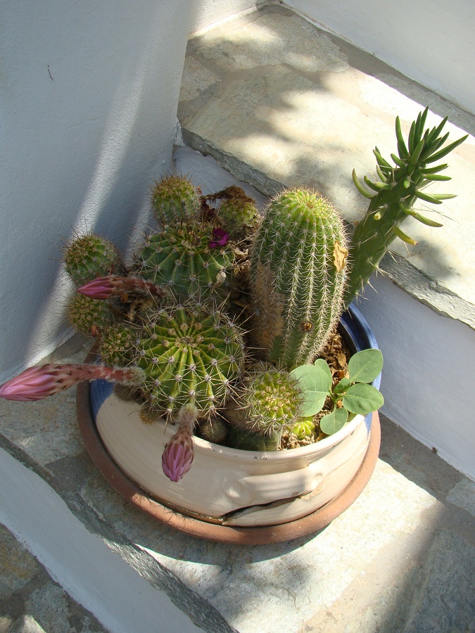 Ο Γιάννης είναι ένας μερακλής Τηνιακός. Αλλά όταν λέμε μερακλής εννοούμε πολύ μερακλής. Έχει εκατοντάδες είδη κάκτων! Και μια απίθανη ποικιλία γλαστρών: στα ενοικιαζόμενα που διατηρεί υπό την επωνυμία Vincenzo (το όνομα του γιού του) στην πόλη της Τήνου, αλλά και στο σπίτι του λίγο έξω από την πόλη. Όταν μου μίλησε για τις γλάστρες του και τους κάκτους του απλά σκέφτηκα μερικές γλάστρες και μερικούς κάκτους. Τίποτα άλλο.