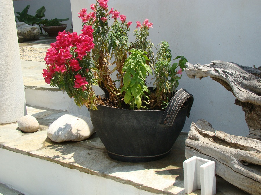 Φεύγοντας βιαστικά να προλάβω το πλοίο στο λιμάνι για Άνδρο ότι απέμεινε στην μνήμη ήταν το ατέλειωτο κέφι του Γιάννη για ακόμα περισσότερες γλάστρες!!!... Στα χέρια του τα πιο ευτελή και άχρηστα αντικείμενα μετατρέπονται σε μια ατέλειωτη ποικιλία γλαστρών για απίθανα φυτά. Δεν ξέρω αν έχουμε στην Άνδρο κάτι αντίστοιχο. Πάντως οι γλάστρες του Vincenzo είναι μοναδικές. Αν δεν το πιστεύεται δείτε τις φωτογραφίες για να καταλάβετε...