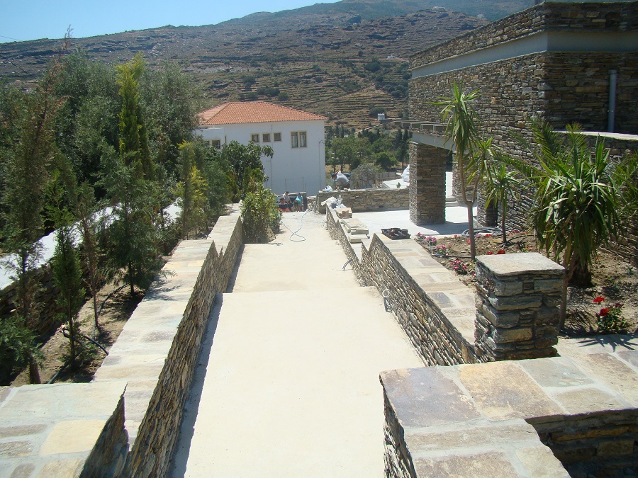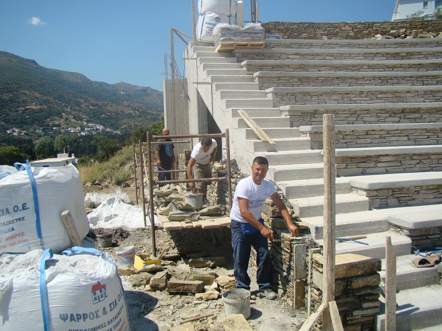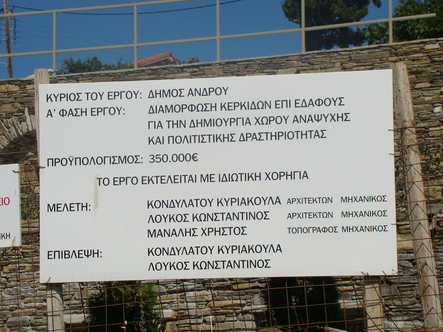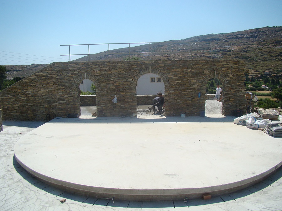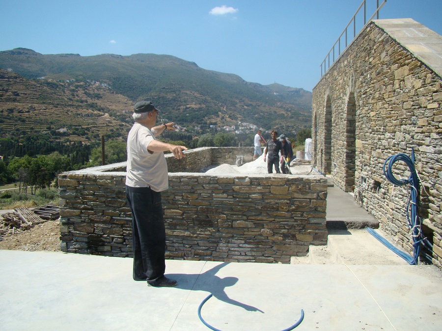 Το «εν Άνδρω» βρέθηκε στο θέατρο το Σάββατο 20 Ιουνίου 2015 μαζί με τον Αλκιβιάδη Τάττο και ξεναγήθηκε σε όλους τους χώρους. Μιλήσαμε με τα διάφορα συνεργεία, είδαμε και φωτογραφίσαμε τα ολοκληρωμένα έργα, αλλά και τα υπολειπόμενα. Πολλά τα συνεργεία (ηλεκτρολόγοι, κηπουροί, πετράδες, μπετατζήδες) να δουλεύουν το ένα δίπλα στο άλλο.