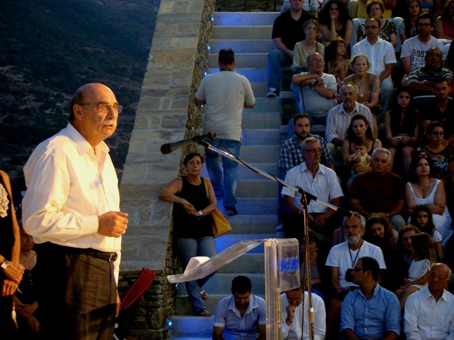 Ήταν όλοι στα εγκαίνια του νέου ανοιχτού θεάτρου Άνδρου. Μάλλον γιατί όλοι τα περίμεναν. Αυτό έδειξε η προσέλευση 1000 περίπου ανθρώπων στον χώρο του θεάτρου. Ίσως γιατί το ανοιχτό θέατρο σαν ιδέα πάει πίσω 15 χρόνια. Σαν σχέδιο πάει πίσω 8 χρόνια. Σαν κατασκευή πάει πίσω …1 χρόνο!!! Μόλις πέρσι τέτοιες μέρες στον χώρο που συγκεντρώθηκαν 1000 άνθρωποι χτες ήταν μια απλή εκσκαφή και μερικά μπετά. Δηλαδή …μια υπόσχεση!!! Και χτες ήταν ένα πολύ κομψό και καλοτοποθετημένο στον χώρο θέατρο!!!