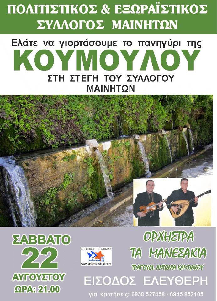 22/8 - ΣΑΒΒΑΤΟ - ΜΑΙΝΗΤΕΣ - ΠΑΝΗΓΥΡΙ ΤΗΣ ΚΟΥΜΟΥΛΟΥ