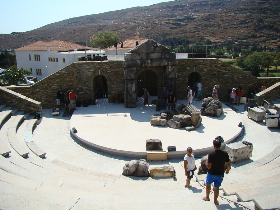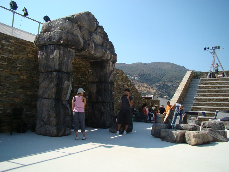 11/8 ΧΩΡΑ: Προετοιμάζεται εντατικά η παράσταση των Τρωάδων στο ανοιχτό θέατρο Άνδρου. Το "εν Άνδρω" βρέθηκε στ ανοιχτό θέατρο την Τρίτη το πρωί 11/8 και σας παρουσιάζει με φωτογραφίες την προεργασία που γίνεται από τους τεχνικούς του Εθνικού Θεάτρου για το σρήσιμο των σκηνικών, του φωτισμού κλπ που ήθραν με μια νταλίκα 17 τόνων!!! Σας πληροφορούμε πως το σύνολο του κλιμακίου του Εθνικού Θεάτρου (ηθοποιοί. τεχνικοί κλπ) είναι 47 άτομα!! Βάλτε και όσους δουλεύουν στην παραγωγή του ανοιχτού θεάτρου, συν όσους πουλάνε εισιτήρια κλπ για να καταλάβετε τι κόσμος δουλεύει για μια παράσταση. Και βγάλτε συνπέρασμα.