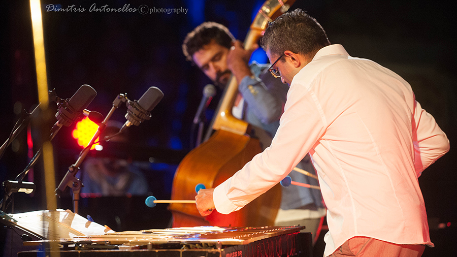 Σε πρώτο πλάνο ο Χρήστος Ραφαηλίδης στο βιμπράφωνο και πίσω ο Πέτρος Κλαμπάνης στο κοντραμπάσο