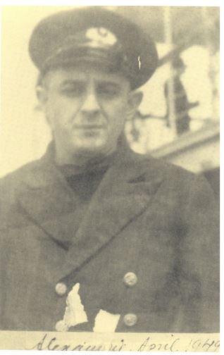 Πάνω το πλοίο Μασσαλία. Με το πλοίο αυτό ταξίδεψε επτά χρόνια.Κάτω το πλοίο Κυρήνεια στο λιμάνι του παλιού Πειραιά. Διακρίνεται πίσω το παλιό ρολόι του λιμανιού. Με το πλοίο αυτό ταξίδεψε μερικά χρόνια. Και οι δύο φωτογραφίες είναι μεταπολεμικές.