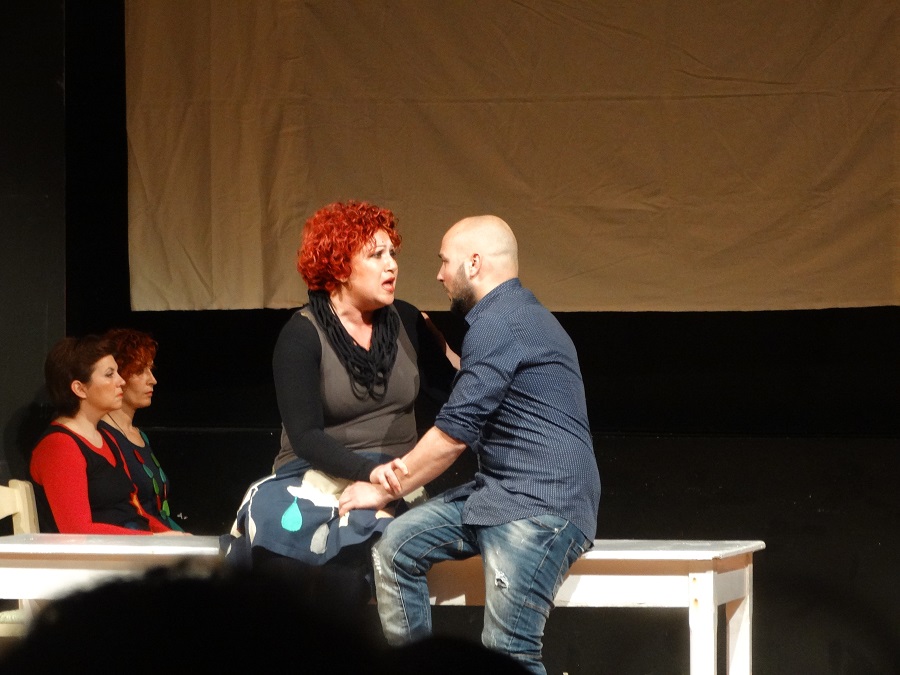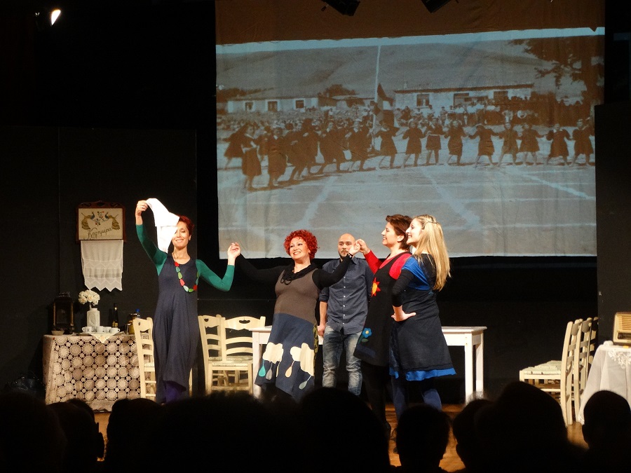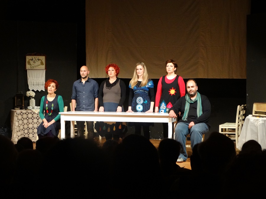 Όλος ο θίασος επί σκηνής. Ένας από του 38 ερασιτεχνικούς θιάσους όπως μάθαμε που έχουν τα νησιά της Περιφέρειας Β. & Ν. Αιγαίου. Έπαιξαν οι ηθοποιοί: Βασιλεία Αρχοντούλη, Λευτέρης Διαμαντάρας, Βάσω Καραντάνη, Κατερίνα Πυροβολικού, Χριστίνα Τσιπλιδη, Νίκος Φουντουκάκης.