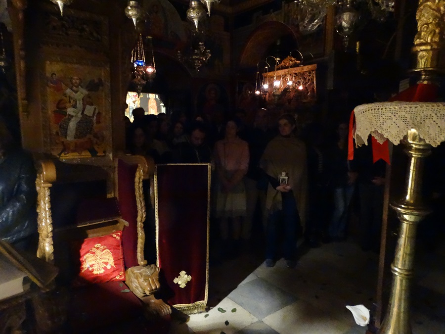 Στο ψαλτήρι νέα πρόσωπα. Κάποιοι από αυτούς έφτασαν από την Αθήνα για να ζήσουν από κοντά την βυζαντινή ατμόσφαιρα του μοναστηρίου που φέρνει μαζί του 10 αιώνες διαδρομή, 10 αιώνες ιστορία...