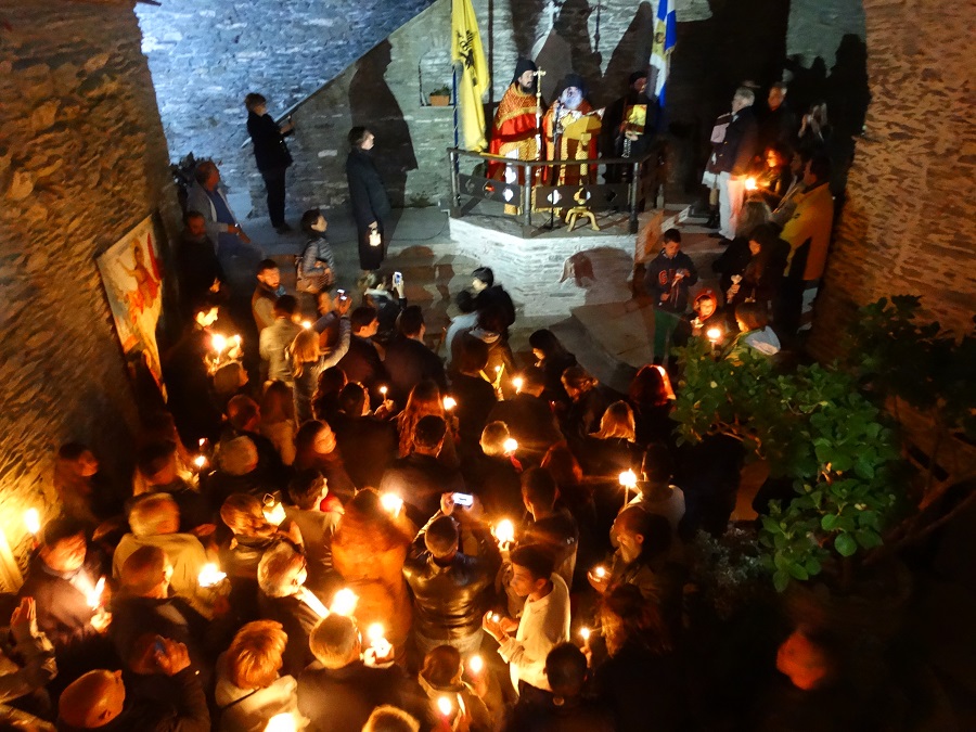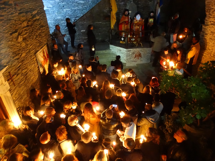 Οι παραπάνω δύο εικόνες όσο κι αν επαναλλαμβάνονται κάθε χρόνο παραμένουν πάντα μοναδικές. Το πλήθος με τα κεριά ψέλνει το "Χριστος Ανέστη". Γύρω ο βυζαντινός περίβολος του παλιού μοναστηρίου προσθέτει μια νότα ιστορίας και κατανυκτικότητας...