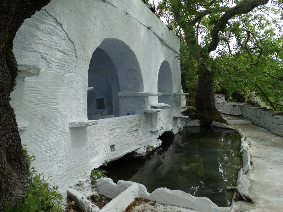 Και η περίφημη πηγή με το νερό να βγαίνει μέσα από τα βράχια και τις πέτρες. Αυτή η πηγή στήριξε το μοναστήρι, αυτή η πηγή μοιάζει με χαραγματιά ζωης στο πέτρινο και άνυδρο τοπίο...