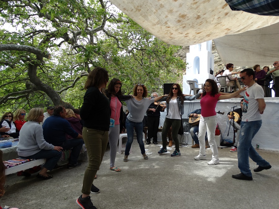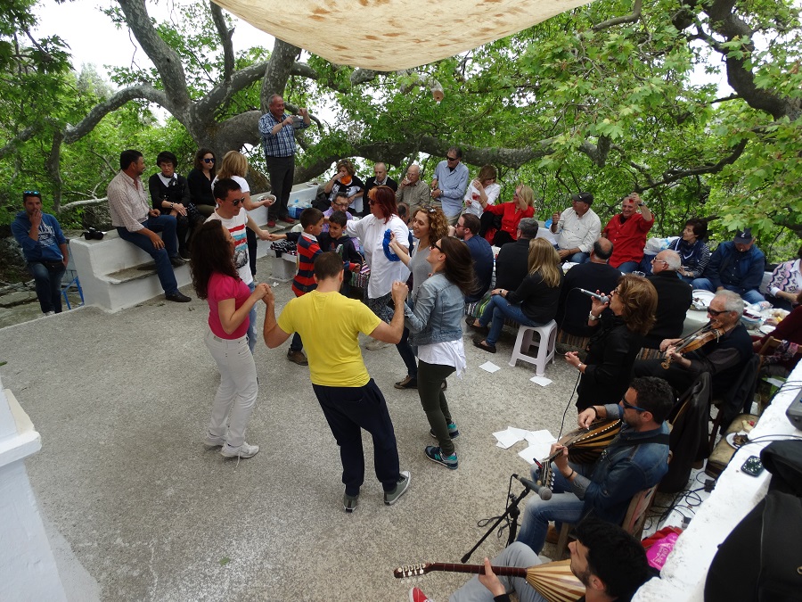 Από νωρίς είχε ξεκινήσει το γλέντι στον Αη Γιώργη. Οι παρέες από την ευρύτερη περιοχή. Εδώ το πανηγύρι είχε πιο τοπικό χρώμα...